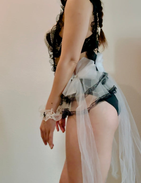 Rave Festival/ Cosplay Set | Bra + Skirt + Choker + Bracelets 5 Pieces | Maid Costume