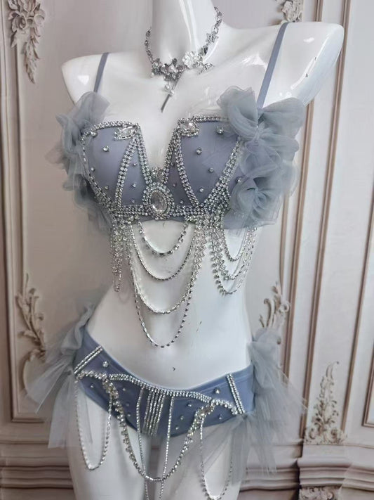 Starlit Princess Rave Outfit | Top + Panties + Mesh Skirt + Necklace 4 Piece Set
