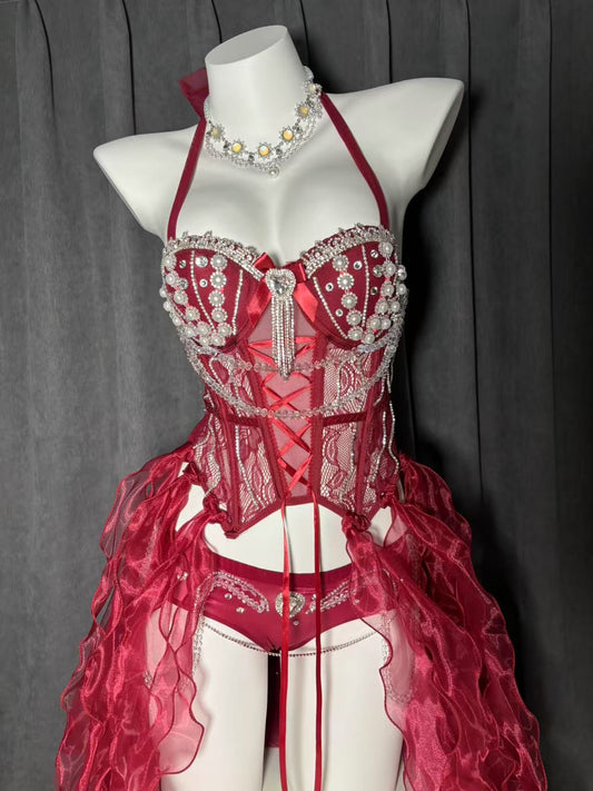 White & Red 2 Colors Princess Outfit | Bra + Panties + Skirt 3 Piece Set