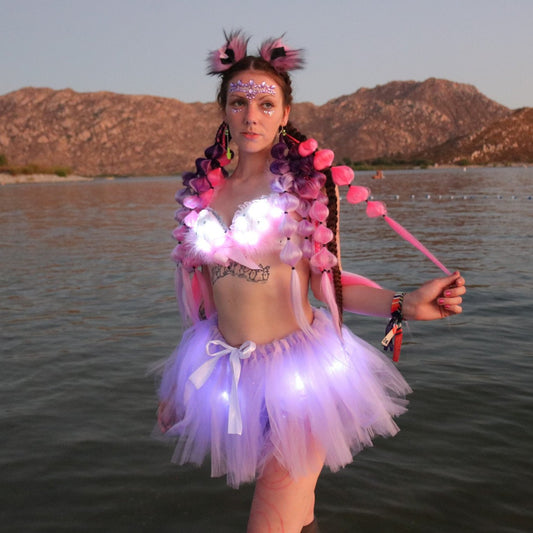 Ballet LED Baddie Rave Outfit | LED Bra + LED Tutu Skirt 2 Piece Set