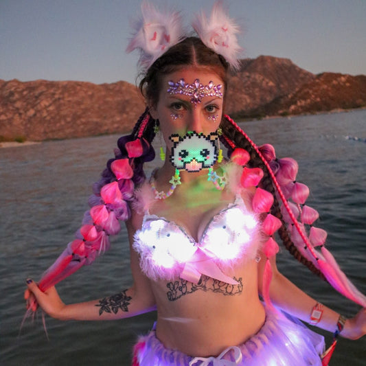 Pink Marshmallow LED Festival Outfit | LED Bra + LED Tutu 2 Sets